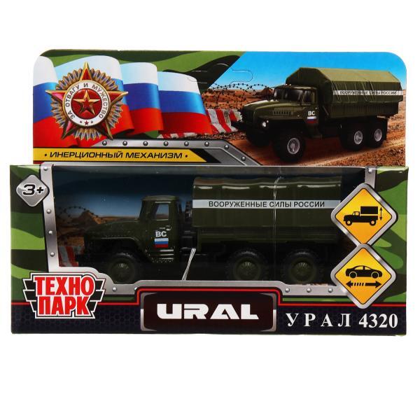 Металлическая модель «УРАЛ 4320» ТМ «Технопарк» - прекрасный подарок для ребёнка:- съёмный тент- инерционный механизм (поставьте машинку ровную поверхность, потяните назад, отпустите – и она тут же поедет вперёд)Металлическая модель, выполненная с учётом всех особенностей прототипа, обязательно понравится вашему ребёнку. Каждая деталь машинки отлично проработана. Реалистичный дизайн данной модели позволит с головой погрузиться в игру, придумывая новые интересные сюжеты. Кроме того, эта игрушка познакомит малыша с видами военной техники. Игра с инерционной моделью ТМ «Технопарк» развивает:- координацию движений- внимание- ловкость- фантазию и воображениеДлина модели: 12 см. Материал: пластмасса + металл.Рекомендовано детям от 3-х лет.