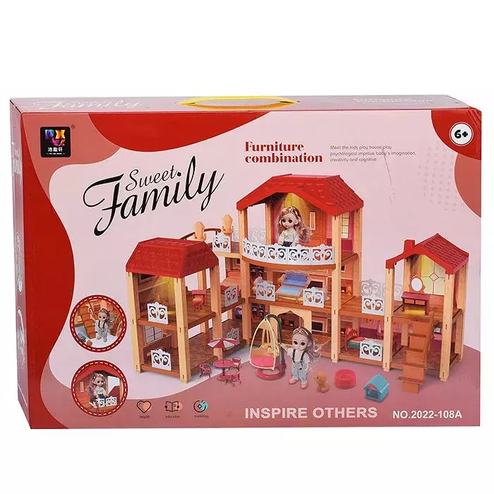 Дом для кукол 2022-108A в коробке. • Размеры дома: 80х43х44 см.