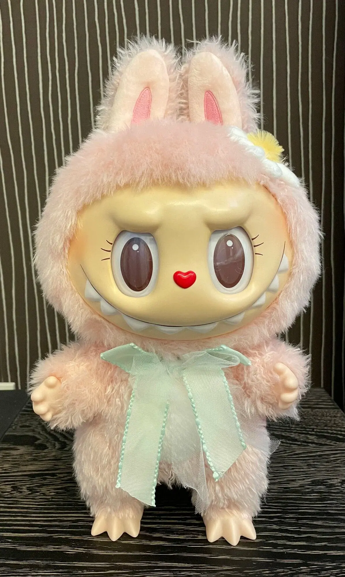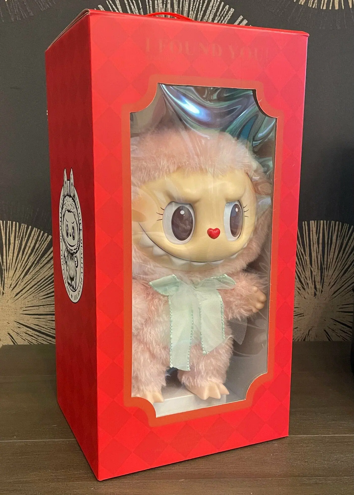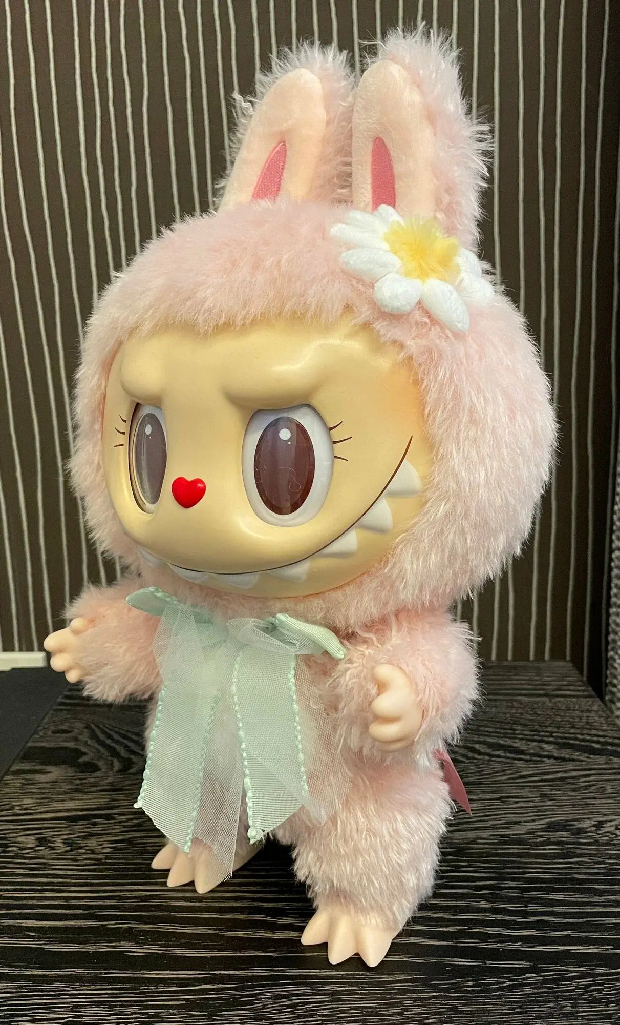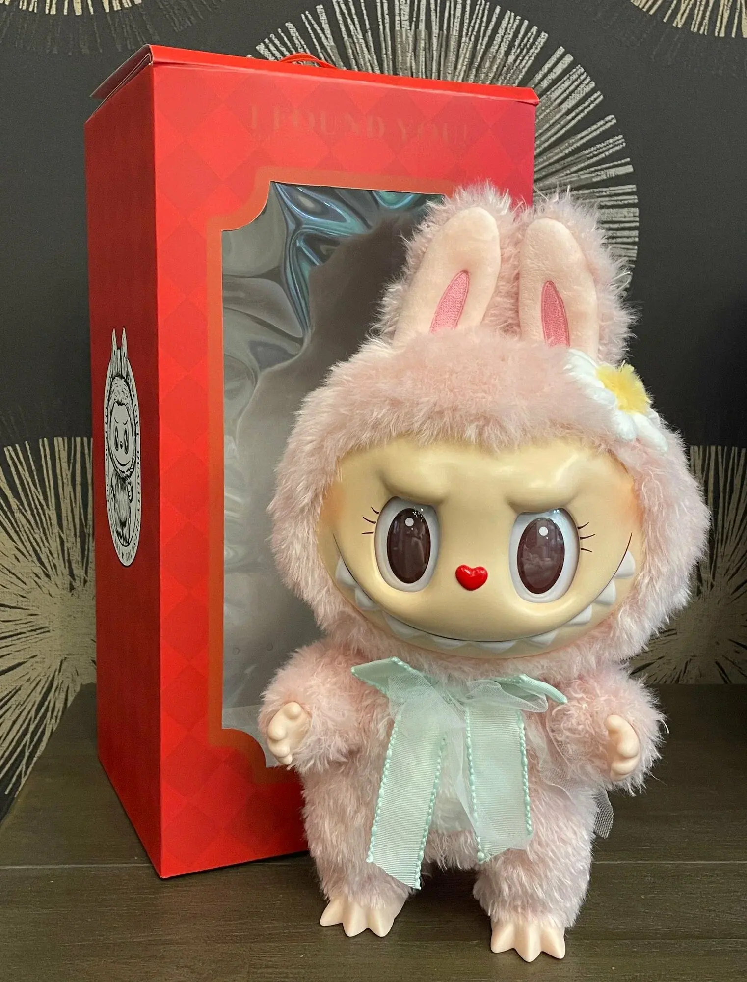 Мягкая игрушка MEGA Лабубу розовая с бантиком 40см в подарочной упаковке