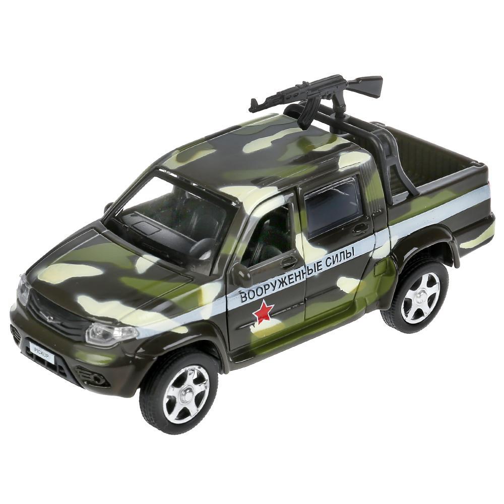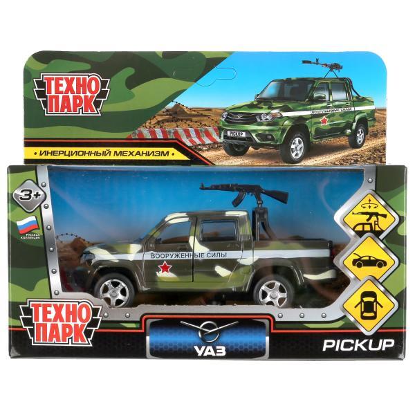 Коллекционная металлическая машина «Военный УАЗ Pickup с пулеметом» ТМ «Технопарк» порадует юного любителя военной техники своим дизайном и функционалом:- открываются двери- открывается багажник- подвижные элементы- инерционный механизм (поставьте машинку на ровную поверхность, потяните за корпус назад, отпустите и она начнёт быстро двигаться вперёд)Металлический пикап, выполненный с учётом всех особенностей прототипа, станет отличным подарком для вашего ребенка. Благодаря открывающимся дверям и багажнику, которые делают машинку максимально похожей на настоящую, всегда можно заглянуть к ней внутрь, чтобы убедиться - каждая деталь отлично проработана. Реалистичный дизайн игрушки с подвижным пулеметом на крыше позволит с головой погрузиться в игру и вдохновит юного героя на новые игровые сюжеты.Игра с инерционной машинкой ТМ «Технопарк» знакомит с различными моделями машин и видами техники и тренирует: - координацию движений- внимание- ловкость Длина: 12 см. Размер упаковки: 17,5 х 7,5 х 6,7 см.Материал: металл + пластмасса.Рекомендовано детям от 3 лет.