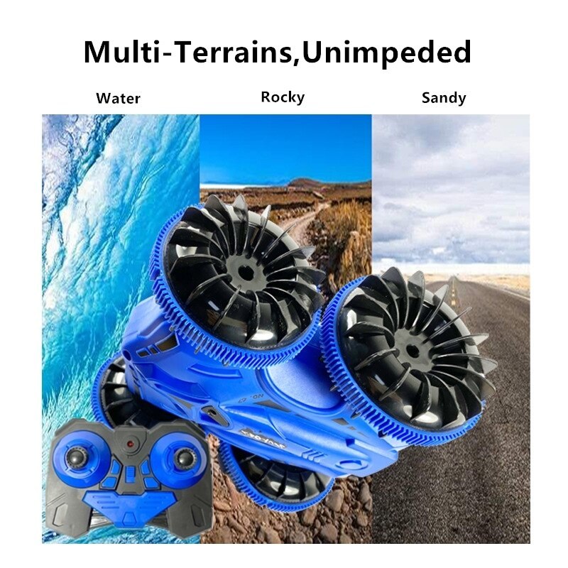 Радиоуправляемая машинка перевертыш - амфибия способна передвигаться в любых направлениях, быстро поворачивает, и даже способна крутиться на 360 градусов. Благодаря двум мощным моторам и полному приводу и большим колесам, машинка-перевертыш может преодолевать любые препятствия и передвигаться по любой поверхности и воде.