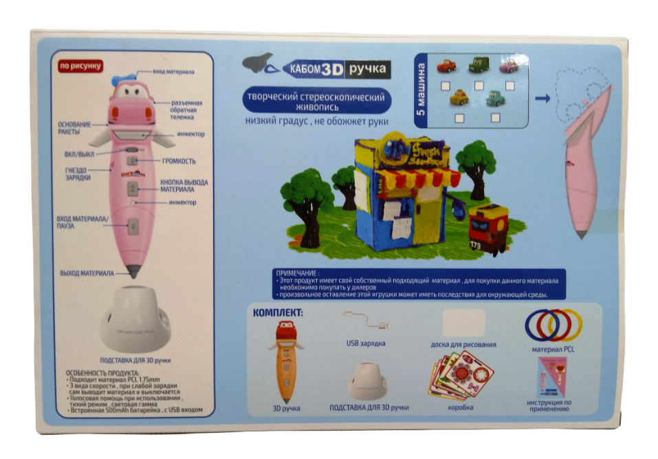 D-ручка нового поколения. Это волшебный инструмент, который позволяет погрузиться в мир современного творчества. Век технологий подарил всем желающим возможность отложить в сторону краски и карандаши и рисовать на столе или в воздухе интересные фигуры различной формы, которую подскажет Ваша фантазия. Благодаря простому, интуитивно понятному управлению и эргономичной конструкции 3D-ручка предоставит максимум комфорта и свободу движений для творчества.